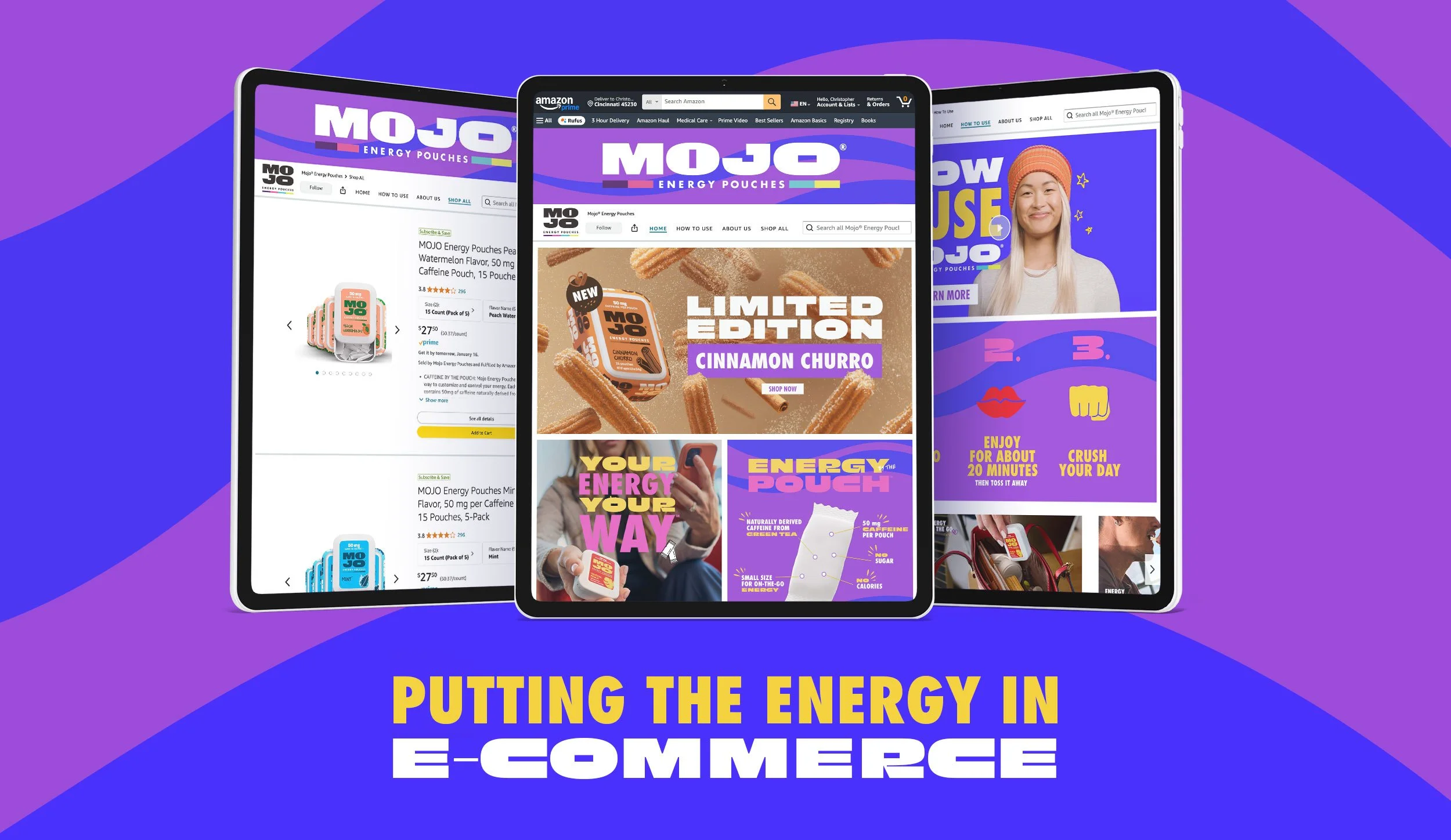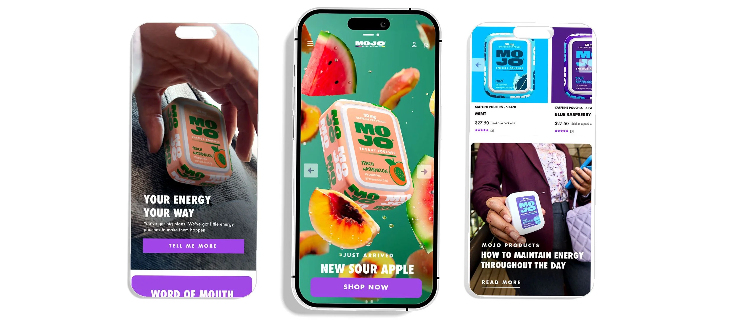 To make sure more people were popping Mojo Energy Pouches into their carts (and their mouths) we revamped our E-Commerce presence with bold visuals that educated consumers on who we are, how to use, and all our vibe-matching flavors.